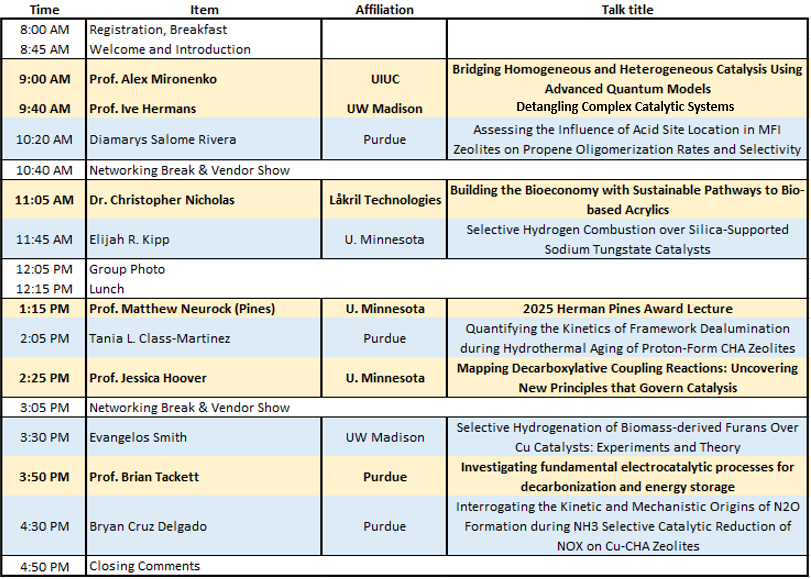We will be holding the annual Catalysis Club of Chicago Spring Symposium on May 5th, 2025 from 8:00 AM – 5:00 PM. The program is now available. This year’s symposium will be hosted by GTI Energy at 1700 S Mt Prospect Rd, Des Plaines, IL 60018. Our great panel of academic, industrial, and student presenters for the 2025 CCC Spring Symposium can be found below!